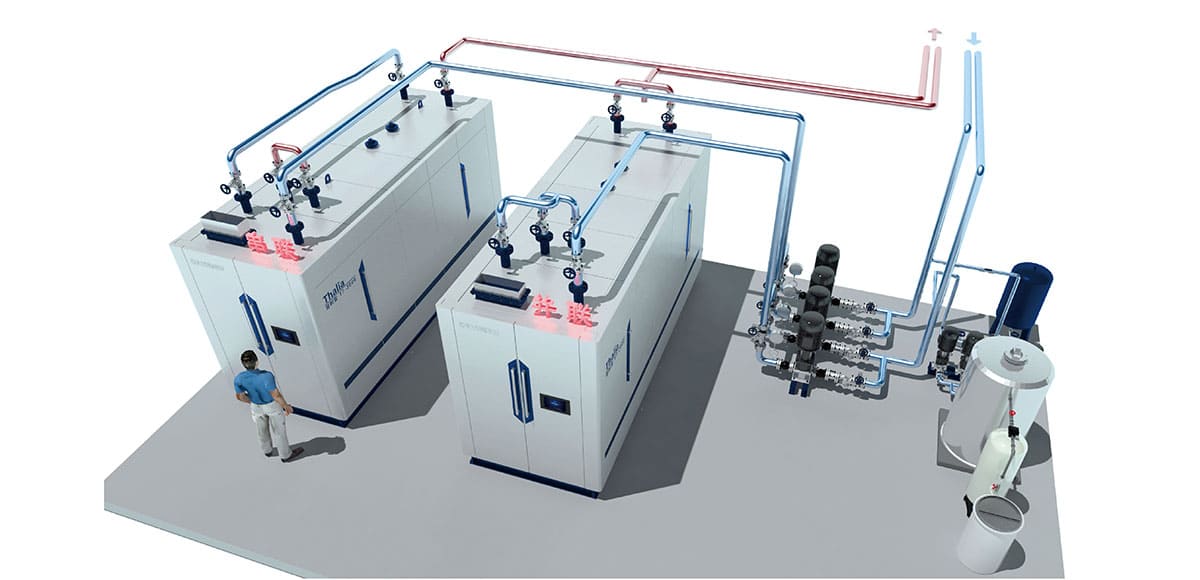 簡介:利用水在低壓下(低于大氣壓)低溫沸騰產生蒸汽,通過汽水凝結換熱方式將熱量輸出。該型號鍋爐運用新型環保表面燃燒技術,燃料和空氣進行全預混,通過精密的調節和控制,確保燃氣和空氣完全混合,使燃燒更充分。先進的 Ultraten 技術換熱元件——羽翼管大幅度提高鍋爐換熱效率,極大提升了煙氣冷凝率。鍋爐整體采用耐腐蝕材料,有效延長鍋爐使用壽命。