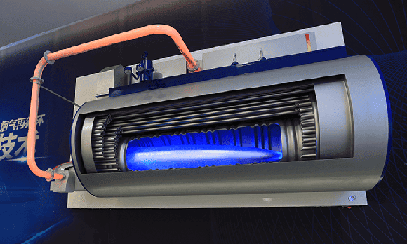 鍋爐燃燒器的火焰被冷卻水管包圍,通過冷卻水管的冷卻水帶走熱量,降低火焰溫度,從而破壞氮氧化物生成條件。通常搭配預混燃燒技術一起使用,預混燃燒可有效縮小火焰長度,較短的火焰可充分被冷卻水管進行降溫,可有效降低 NOx 排放濃度。